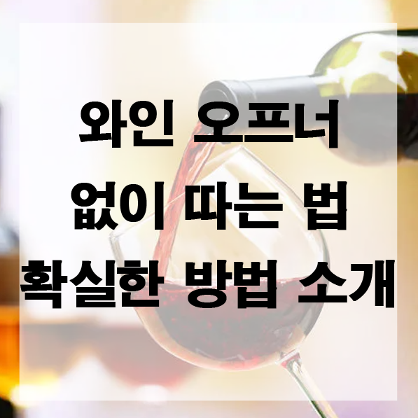 와인 오프너 없이 와인을 열기는 쉽지 않을 수 있지만, 몇 가지 대안적인 방법이 있습니다.