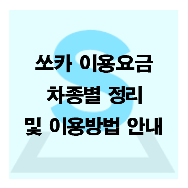 오늘은 쏘카 이용요금 차종별 정리 및 이용방법에 대해 알아보고자 합니다.
